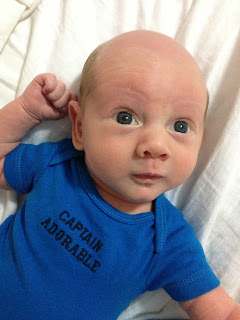 He got some hair back on the top of his head so he's not sporting the old man hair do anymore. He is smiling and coo-ing like crazy. I even caught a little smirk in his two month picture. He's infatuated with his Dad and when Dan comes home, I become chopped liver. He only has eyes for Daddy. The day he got his immunizations he was crying and crying and crying, I could only settle him down for a few minutes at a time. Dan comes home and a few seconds later, Brooks is smiling and having a good ole time on the couch with Dad. Figures.